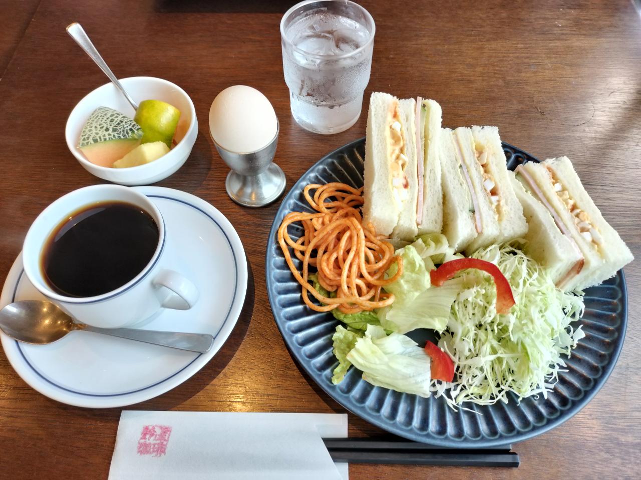 大阪 喫茶店モーニング サンドウィッチと果物 2024年10月28日 00:02 羽曳野市役所前にある喫茶店『SUZUYA COFFEE』モーニングセット『Cセット サンドウィッチ(750円)』をいただきますこちらが『Cセット サンドウィッチ(750円)』玉子とハムのサンドウィッチに加えサラダ、パスタも付いています飲み物はコーヒーゆで卵、果物付きボリュームのあるモーニングセット SUZUYA COFFEE 羽曳野市誉田3-16-1 「大阪 南河内 グルメ」カテゴリの最新記事 タグ :#朝食#モーニング < 前の記事次の記事 > コメント コメントフォーム 名前 コメント 記事の評価 リセット リセット 顔 星 情報を記憶 コメントを投稿する