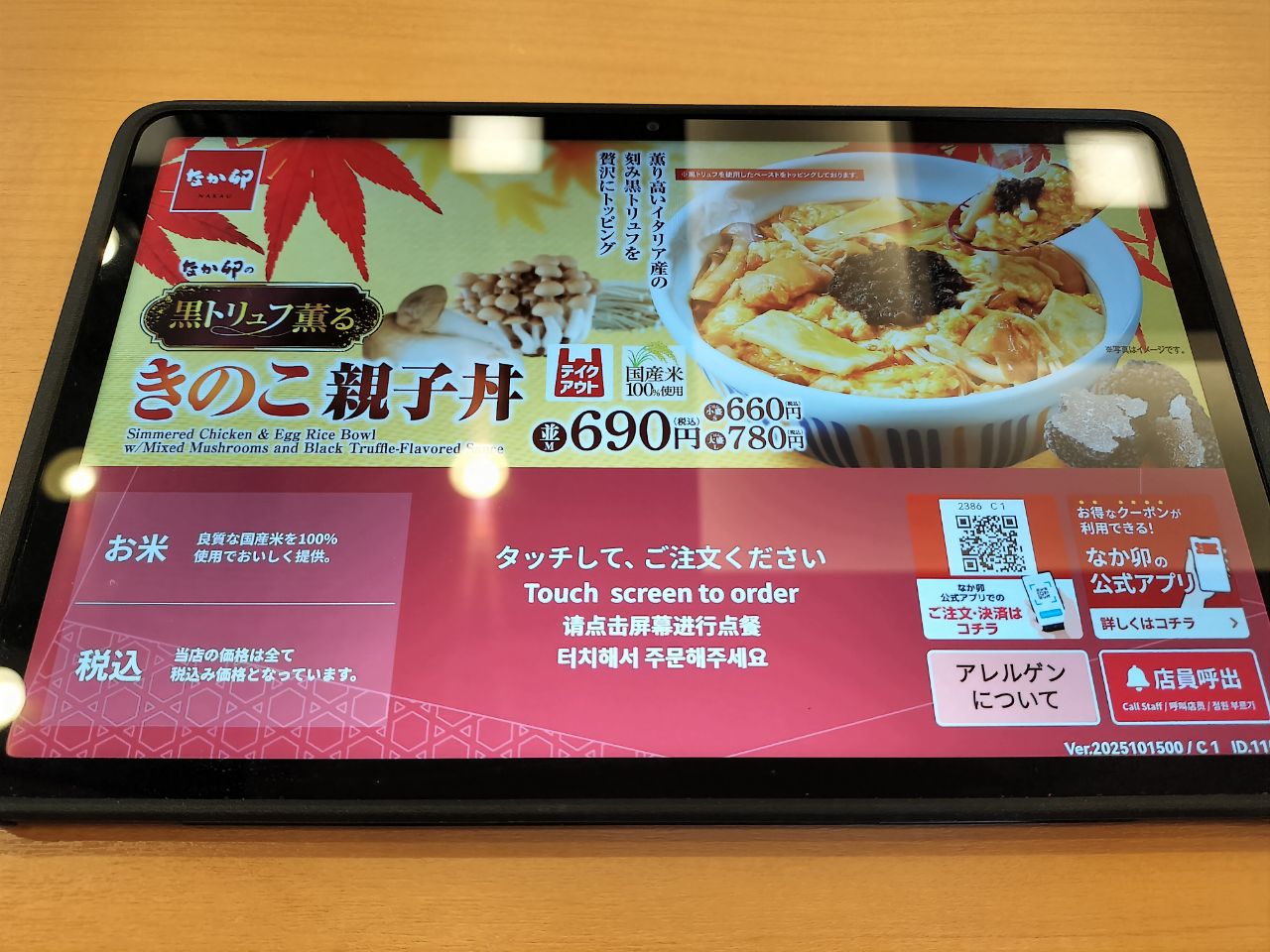 なか卯 トリュフ風味豊かなキノコの親子丼 2025年10月31日 06:30 なか卯 『黒トリュフ薫るきのこ親子丼 並盛(690円)』をいただきますこちらが『黒トリュフ薫るきのこ親子丼』黄身をトッピング風味豊かなトリュフ玉子とじされたキノコの親子丼と良く合って美味しい逸品 「グルメ」カテゴリの最新記事 < 前の記事次の記事 > コメント コメントフォーム 名前 コメント 記事の評価 リセット リセット 顔 星 情報を記憶 コメントを投稿する