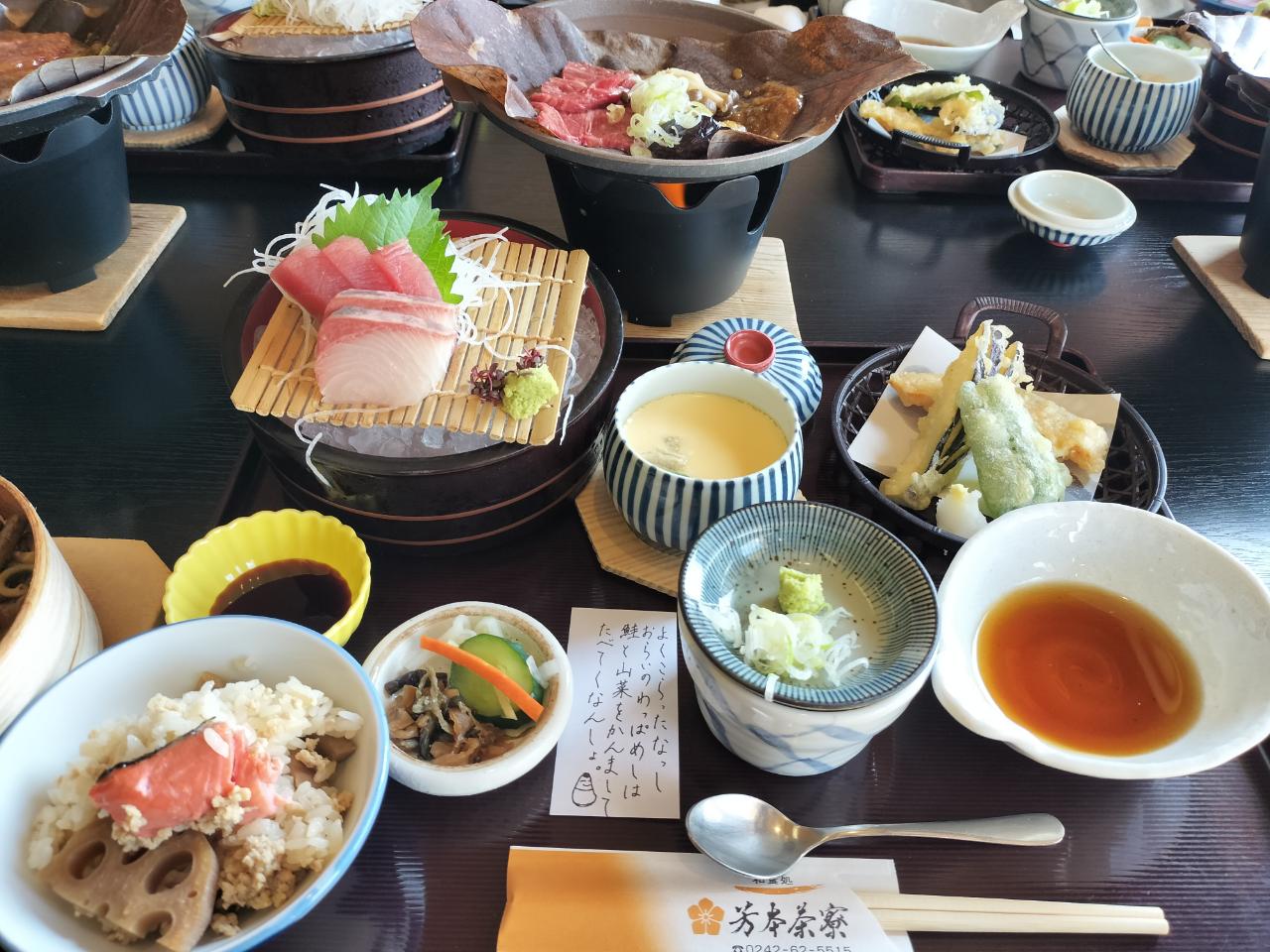 会津郷土料理とお蕎麦の芳本茶寮 福島牛朴葉焼とお蕎麦のランチ 2025年12月02日 06:30 会津郷土料理とお蕎麦のお店 『芳本茶寮』でランチ店内からは紅葉づい会津磐梯山がランチは『長瀬膳(4,300円)』をいただはますこちらが長瀬膳ご飯は会津郷土料理のわっぱめし福島牛の朴葉焼き新鮮なお造り会津産のお蕎麦別料金でデザートとコーヒーデザートは団子の天ぷら猪苗代湖 湖畔の木々の紅葉も綺麗美味しい長瀬膳とデザートでした芳本茶寮耶麻郡猪苗代町字城南139-1 「東北グルメ」カテゴリの最新記事 < 前の記事次の記事 > コメント コメントフォーム 名前 コメント 記事の評価 リセット リセット 顔 星 情報を記憶 コメントを投稿する
