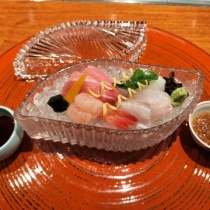 古都奈良新大宮にある『和やまむら』店内へ8月度の『本懐石料理(14,520円 サービス料10%含)』をいただきますまずは先付と食前酒の梅酒先付はアワビの酒蒸し椀物出汁が効いて美味しいアイナメのお吸い物お造り大トロ、甘エビ、剣先イカ、平目、平目えんがわ八寸氷の上に盛られ ...